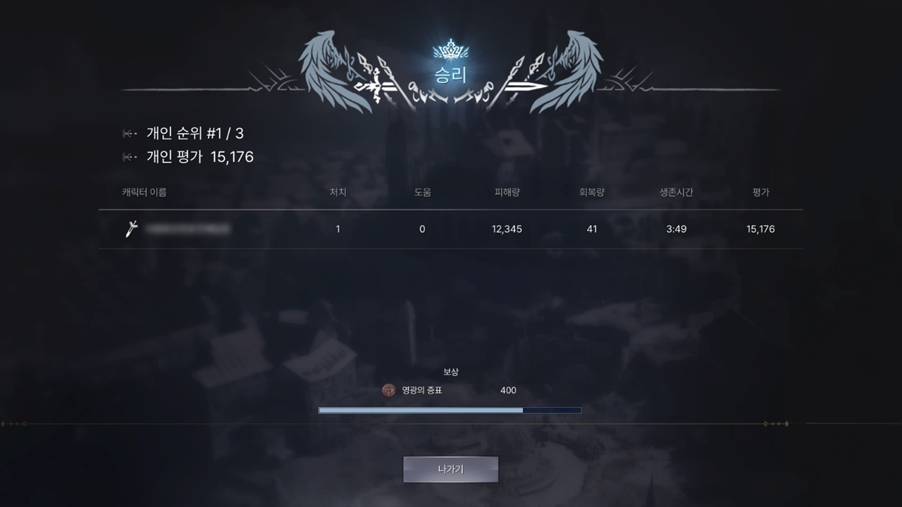 - 영광의 섬(개인전)에서 최후의 생존자가 되면 승리합니다.