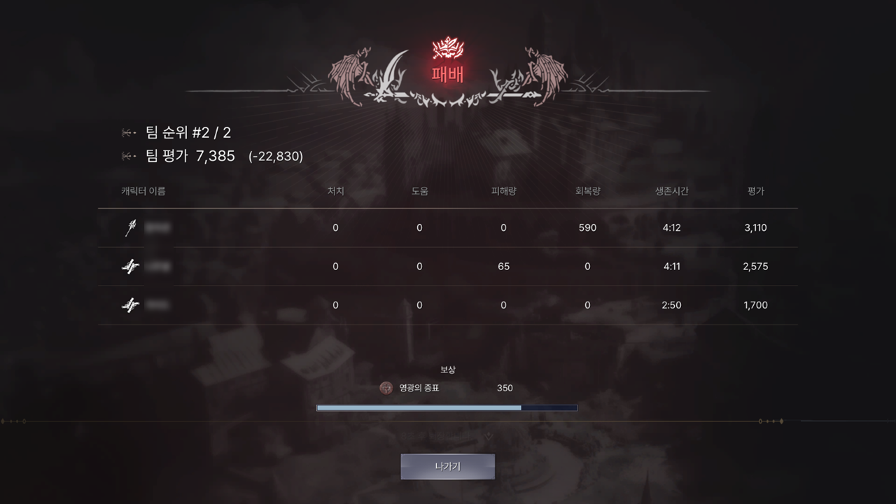 - 영광의 섬(팀전)에서 모든 아군 파티원이 사망하면 패배합니다.