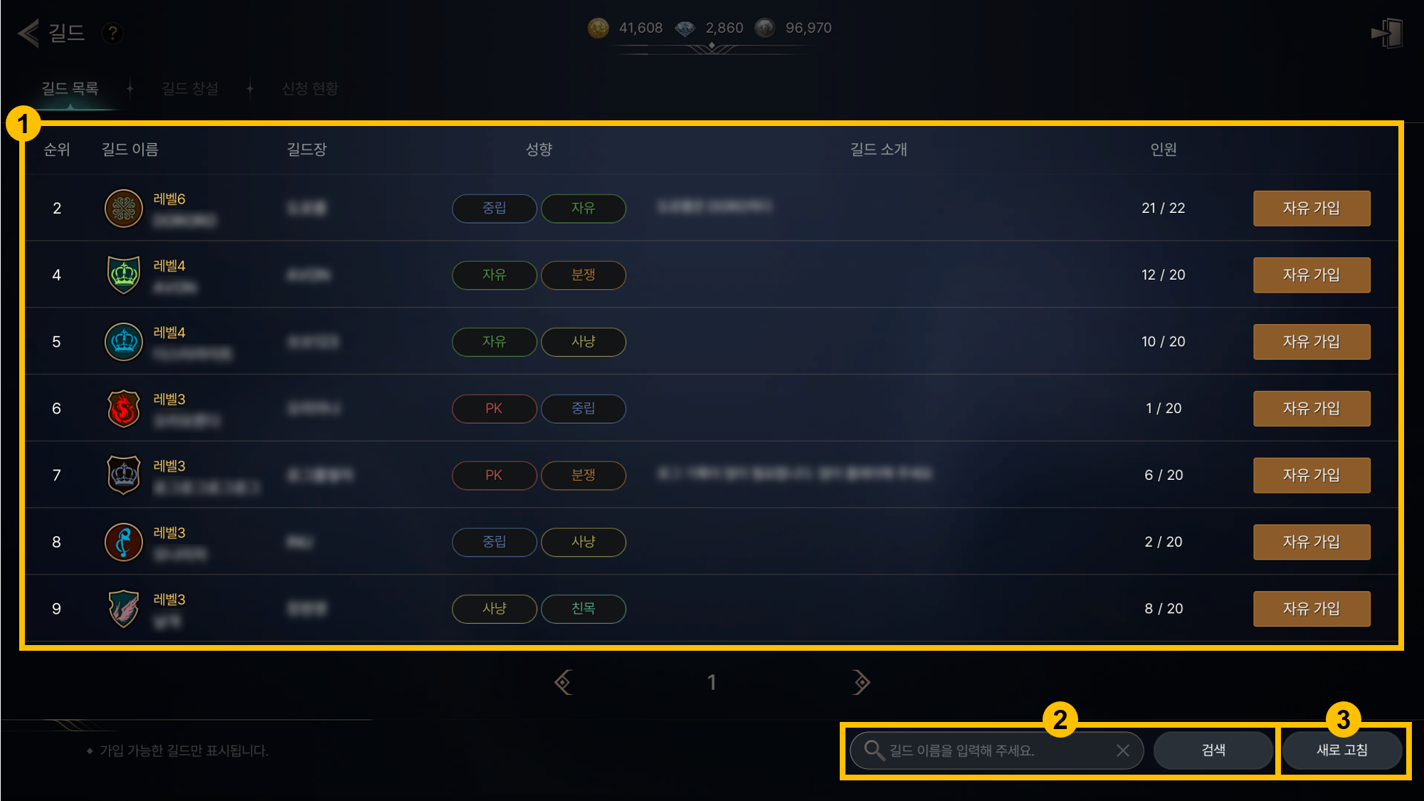 - ① 길드 목록