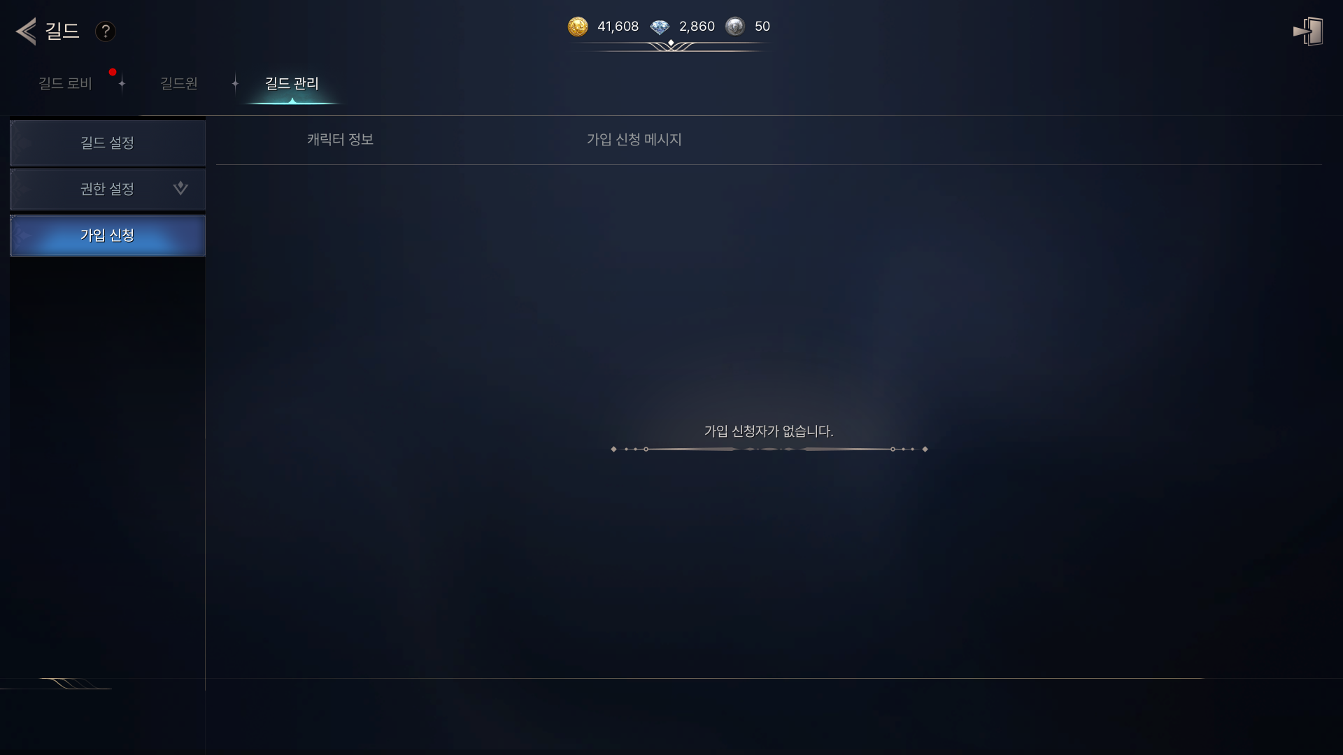 - 길드 가입 신청 현황을 확인할 수 있습니다.