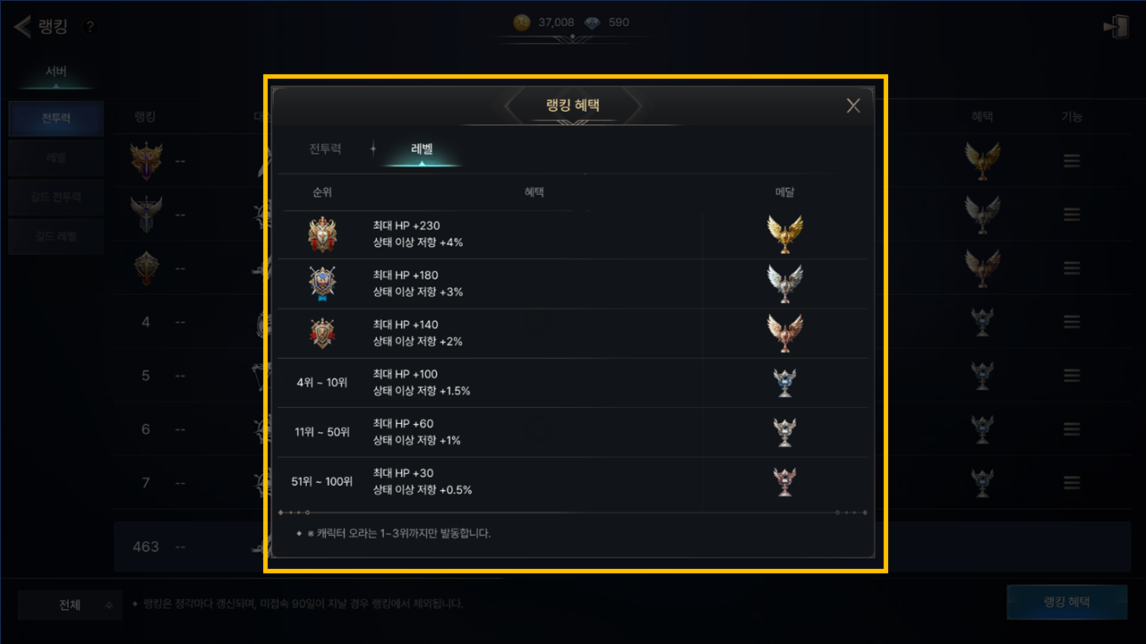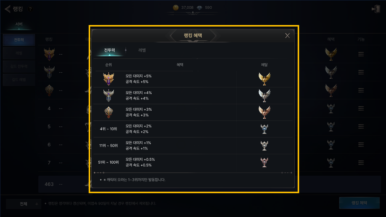 - - 랭킹 혜택은 캐릭터 순위에만 해당되며, 길드 순위에는 적용되지 않습니다.