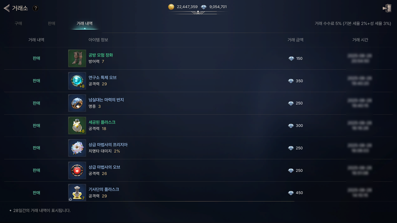 - 거래소에서 판매한 아이템 기록을 확인할 수 있습니다.