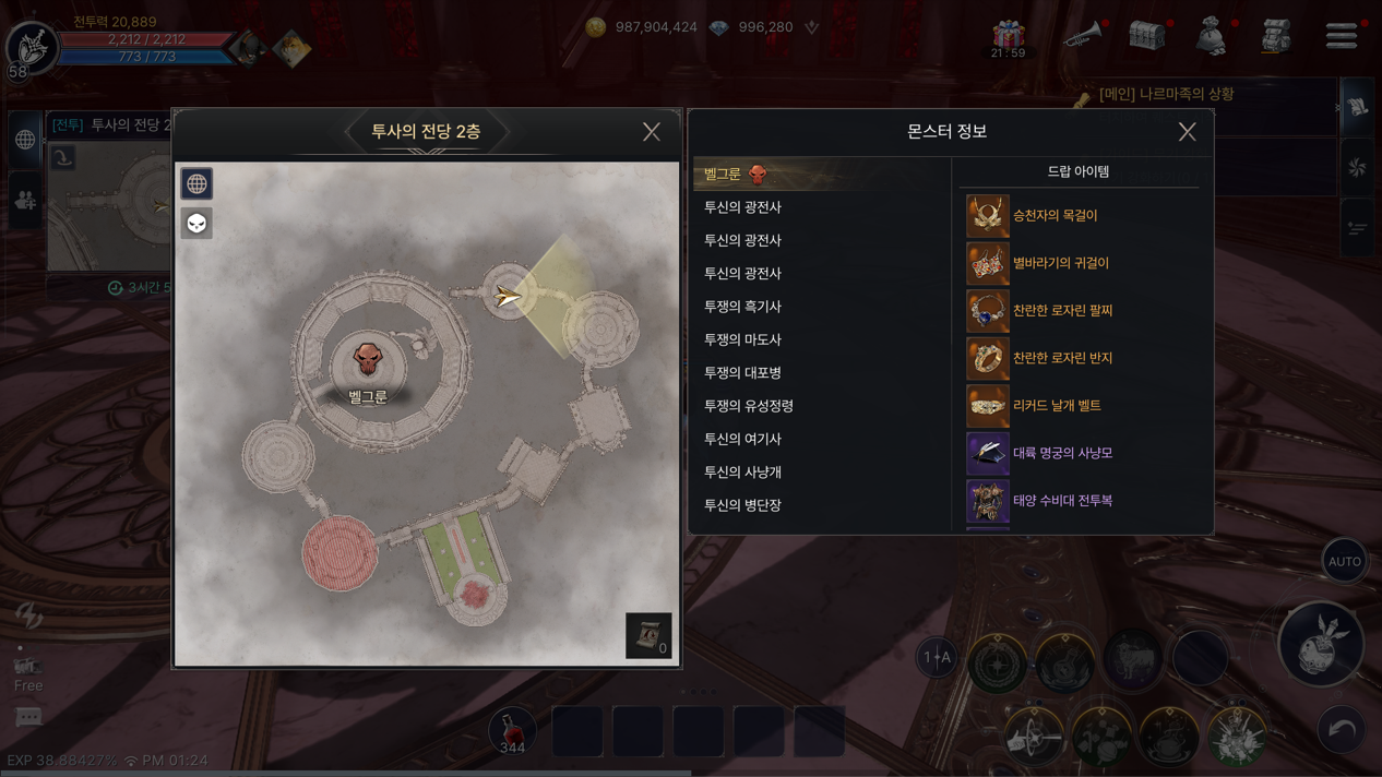- - 투사의 전당 2층에서는 보스 몬스터 ‘벨그룬’이 등장합니다.