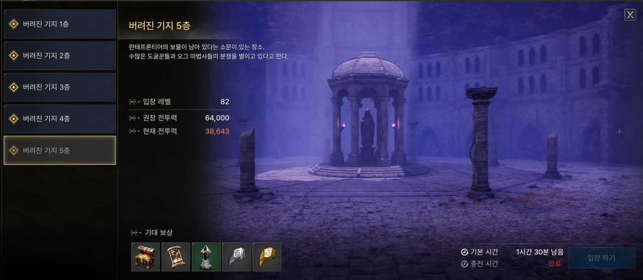 - 82레벨 이상부터 입장 가능합니다.