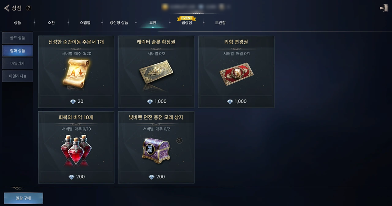 - 외형 변경권은 ‘상점 → 교환 → 잡화 상품’ 메뉴에서 구매할 수 있습니다.