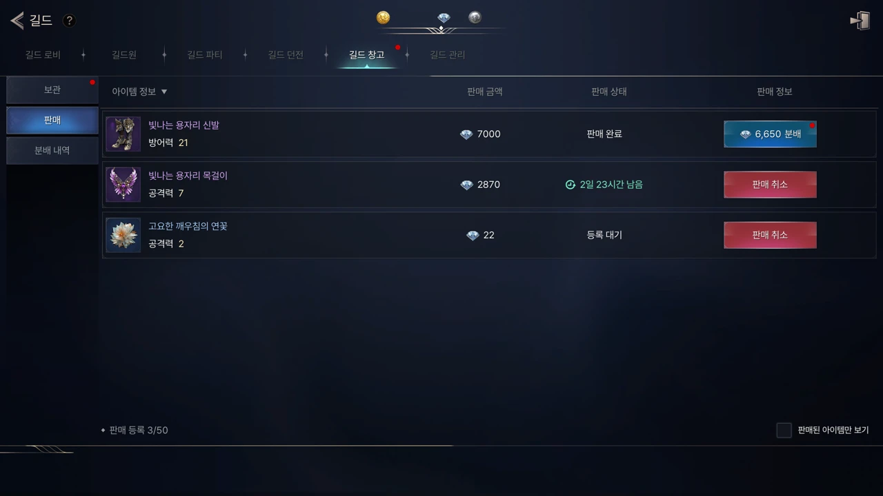 - 길드 창고를 통해 획득한 아이템을 거래소에 등록하고,
