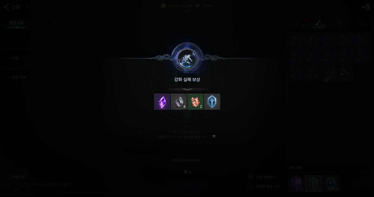 - 장비 강화 실패 시 보상 아이템이 새롭게 추가될 예정입니다.