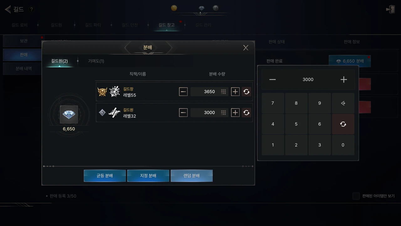 판매 완료 시 정산된 대금을 길드원과 분배할 수 있는 시스템이 추가될 예정입니다.