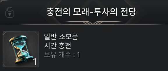다른 특수 던전과 동일하게 ‘충전의 모래’를 통해 이용 시간을 충전할 수 있습니다.