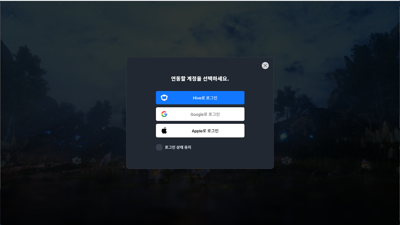 1. 게임 설치 후 클라이언트를 실행하여 하이브/구글/애플 계정으로 로그인