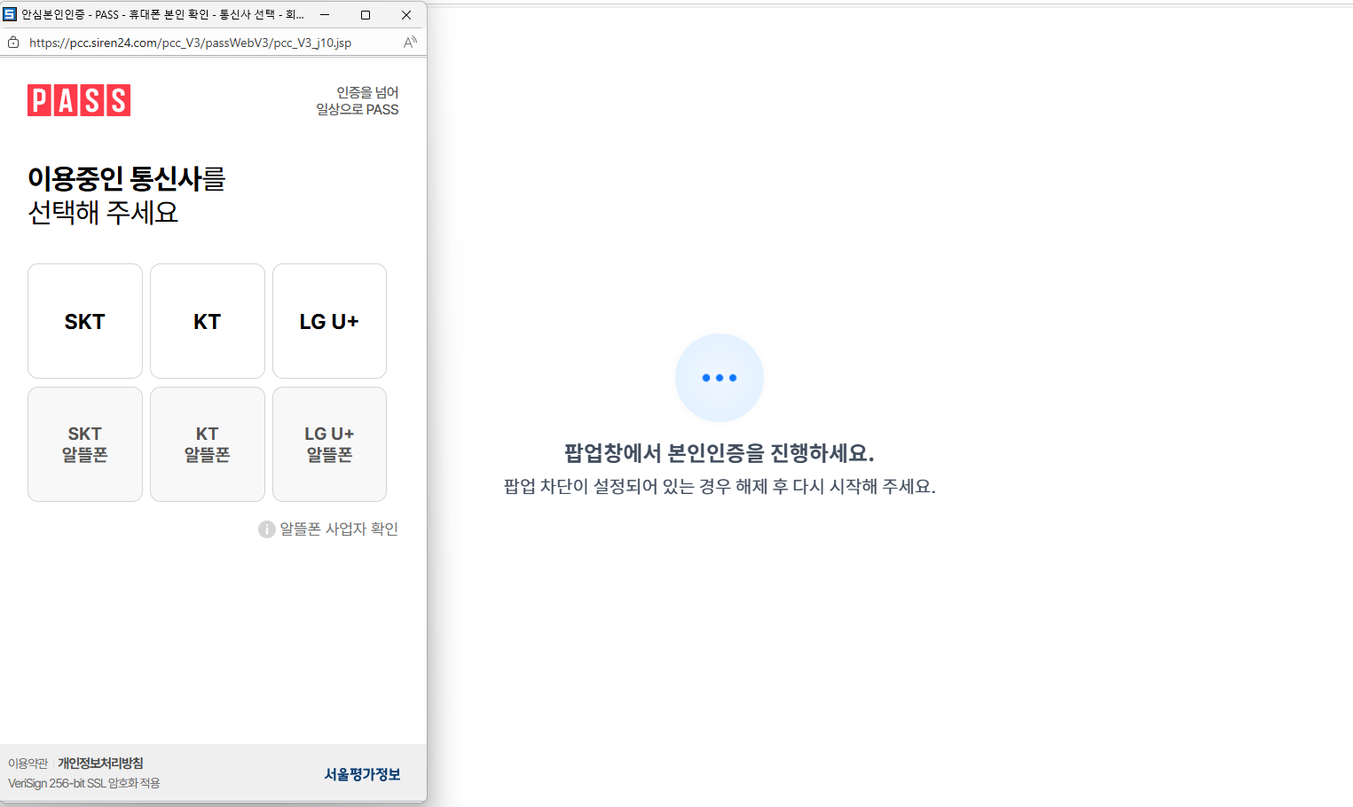 1) 본인인증 사이트의 주소창 오른쪽에 있는 '팝업 차단 아이콘'을 클릭