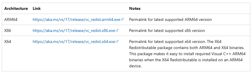 1) [Microsoft Visual C++ Redistributable - 공식 홈페이지 바로가기] 링크로 접속