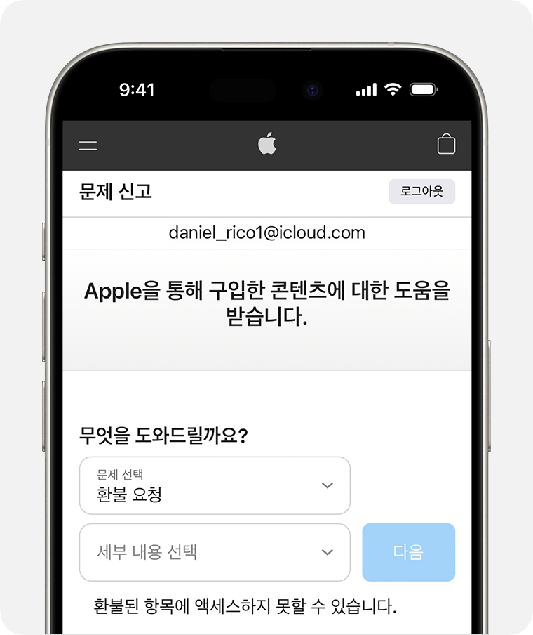 1. 🔗reportaproblem.apple.com 페이지에 로그인합니다.