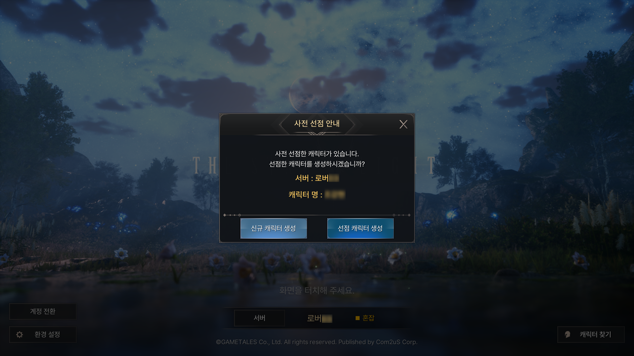 - 캐릭터명 선점에 참여했던 계정으로 로그인하고, 선점 시 선택했던 서버로 접속해야 합니다.
