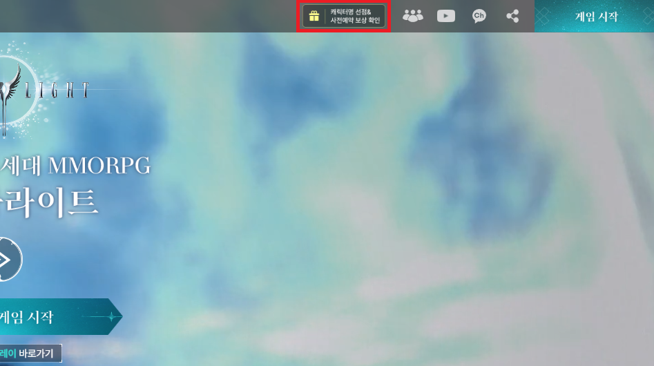 우측 상단에 있는 [캐릭터명 선점&사전예약 보상 확인]을 클릭하여 확인할 수 있습니다.