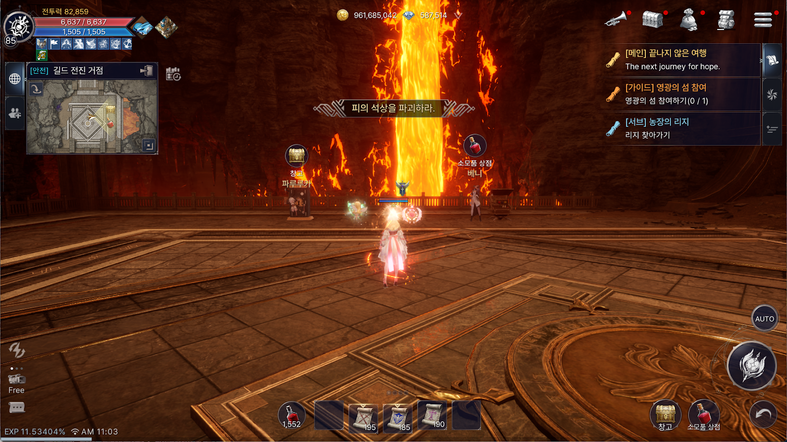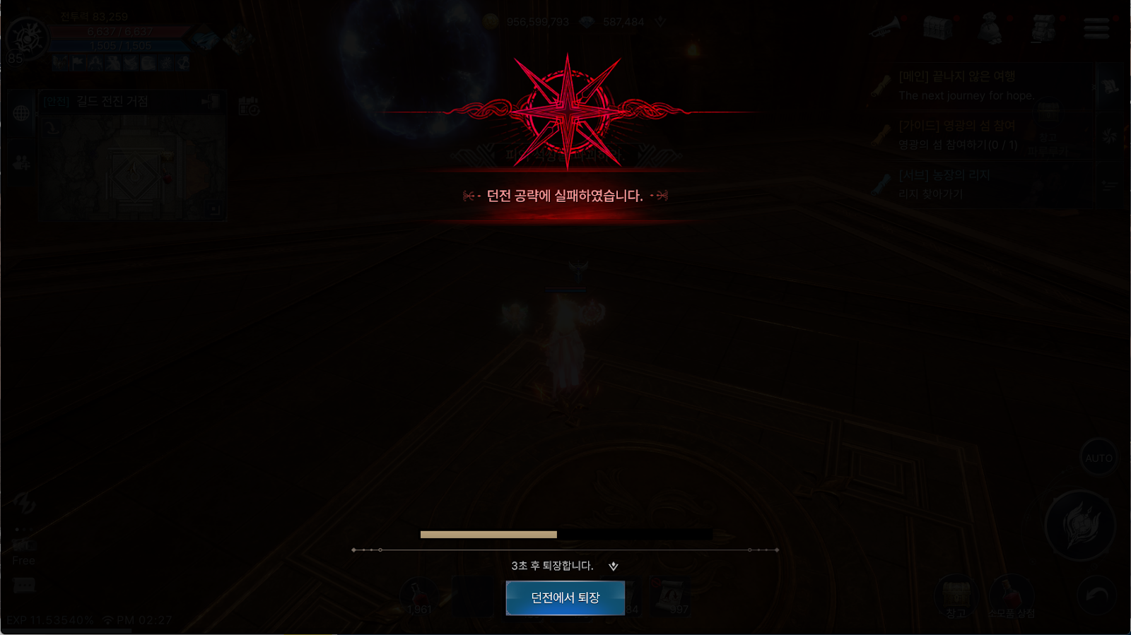 - 길드 던전을 활성화하면 던전 제한 시간이 표시됩니다.
