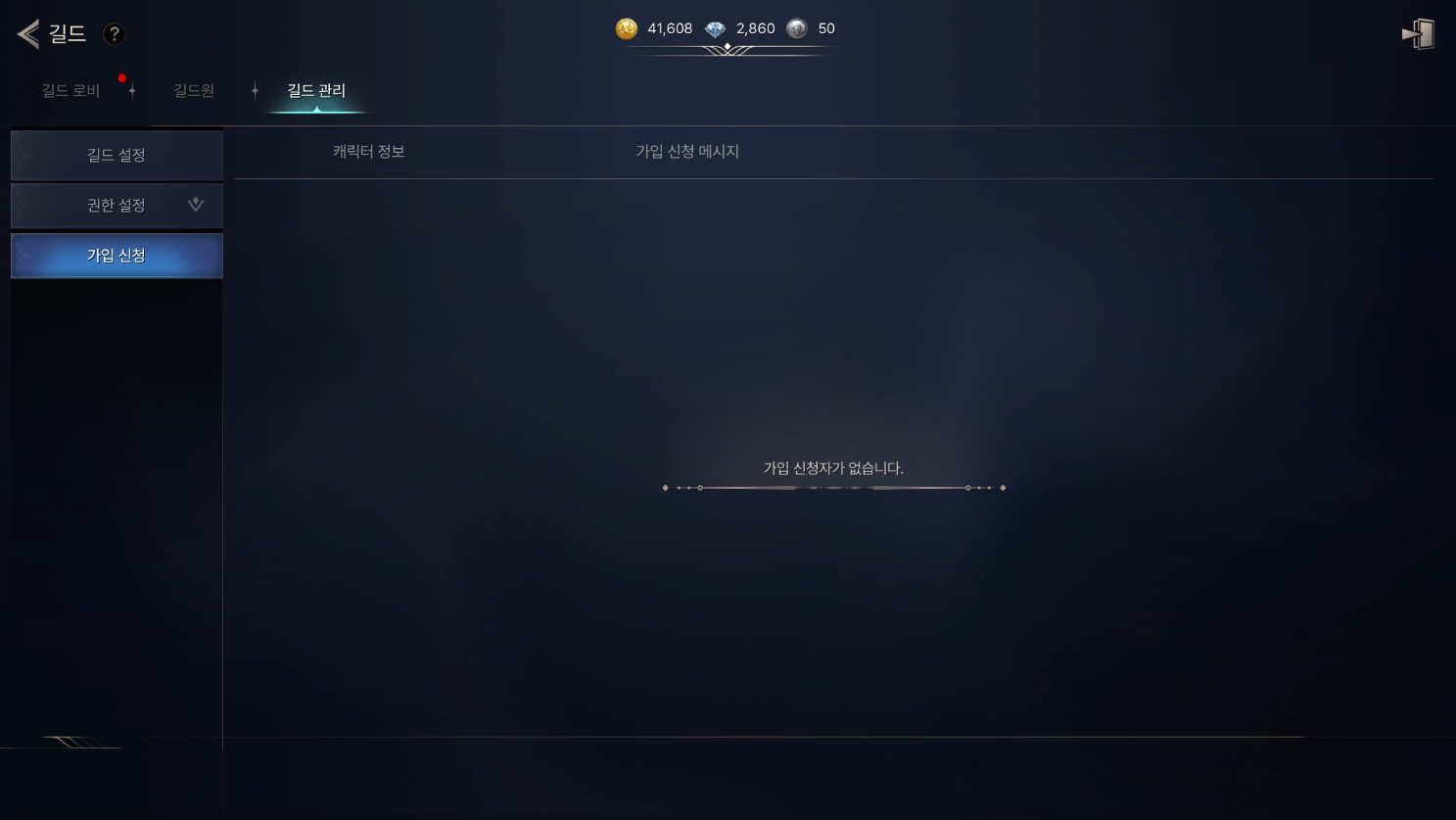 - 길드 가입 신청 현황을 확인할 수 있습니다.