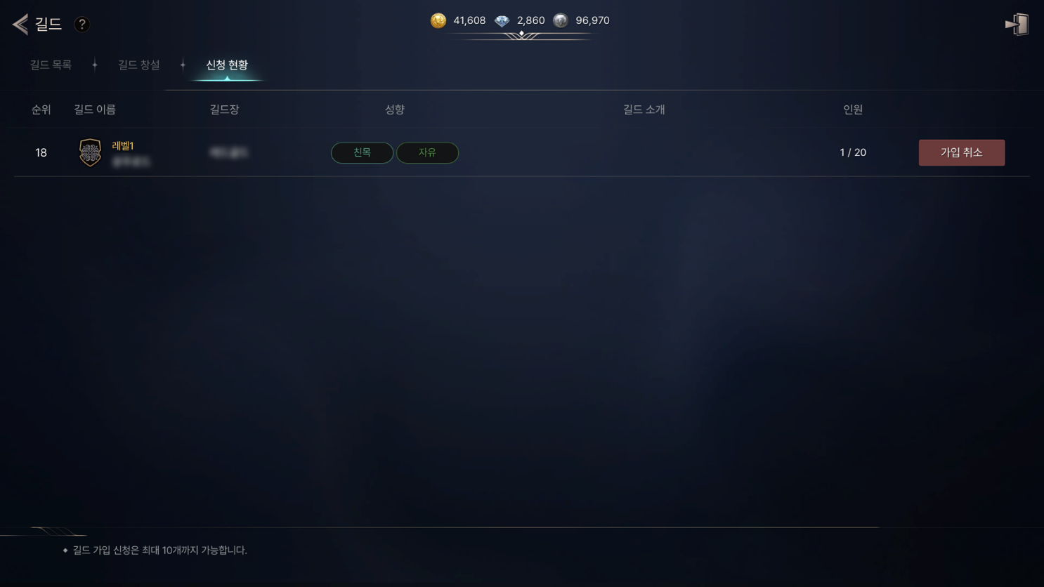 ※ 길드 가입 신청은 최대 10개까지 가능합니다.